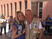 Here’s a pic of those dunes they all faced yesterday, on the first stage, and the founder, on arrival in Morocco, Patrick Bauer and a pic of her reaching end of stage 2 a few minutes ago.….