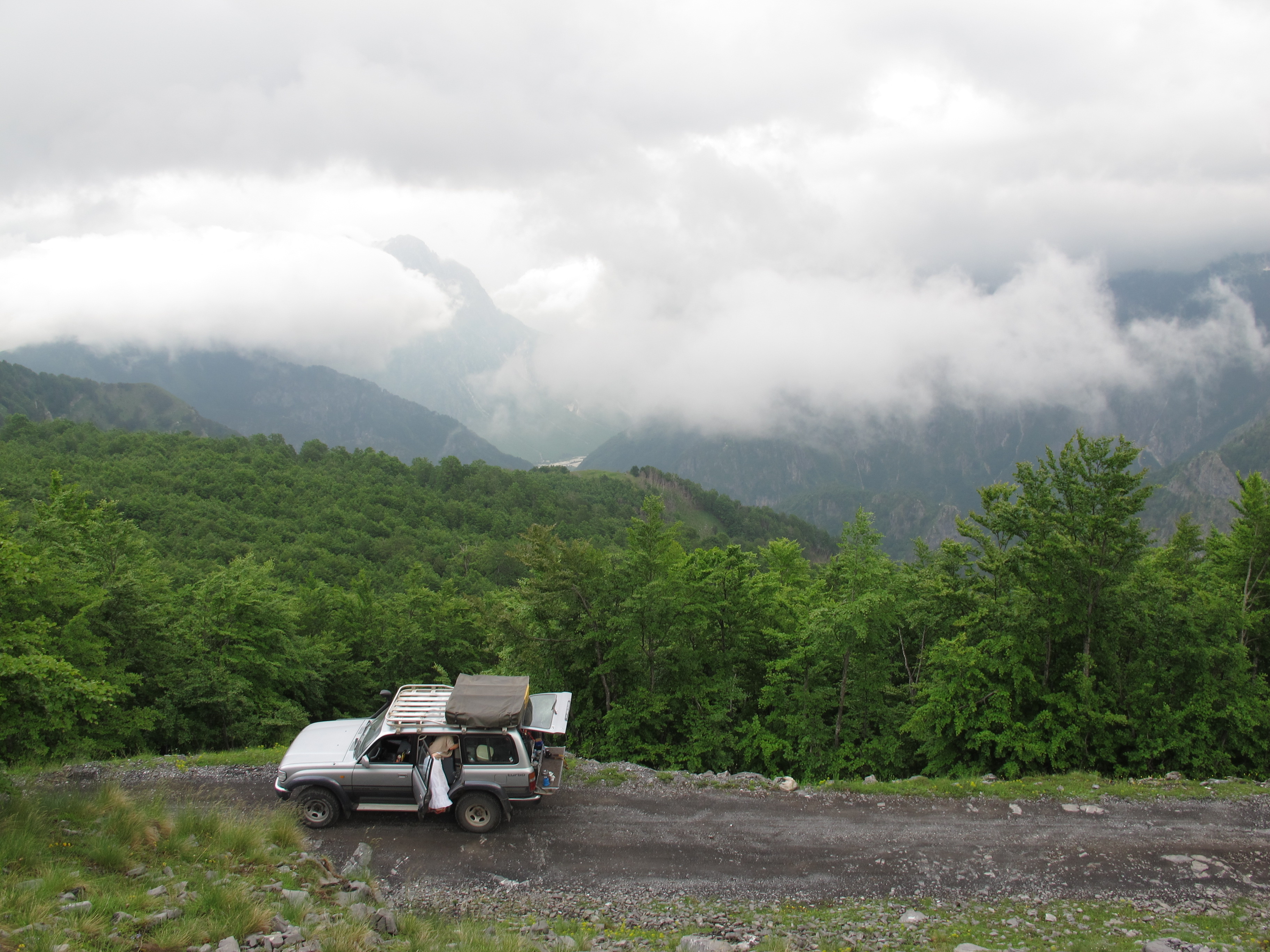 As we descended the other side, to the Shala Valley floor, and approached the snow melt in the river we saw a young boy, wearing a stripey sweatshirt, sprinting haphazardly over the bleached boulders on the far bank. It turned out to be Francesco. He leaped onto the running board of the car and proceeded to drive us along the trails to show us the layout of the irregularly spaced settlement. We spent the next few days in his company, naming him the Miniature Mayor of Theth, for the respect he commanded from the elders we encountered. Inevitably he coaxed us back to his family, the Harushas, where we stayed for a couple of nights, ate their local fare and consumed home made rakija. The meat and cheese seemed to get more pungent and rancid by the hour, but the honey was deliciously creamy, the butter was soft, nutty and freshly made and unsweetened black cherry jam was a delight.