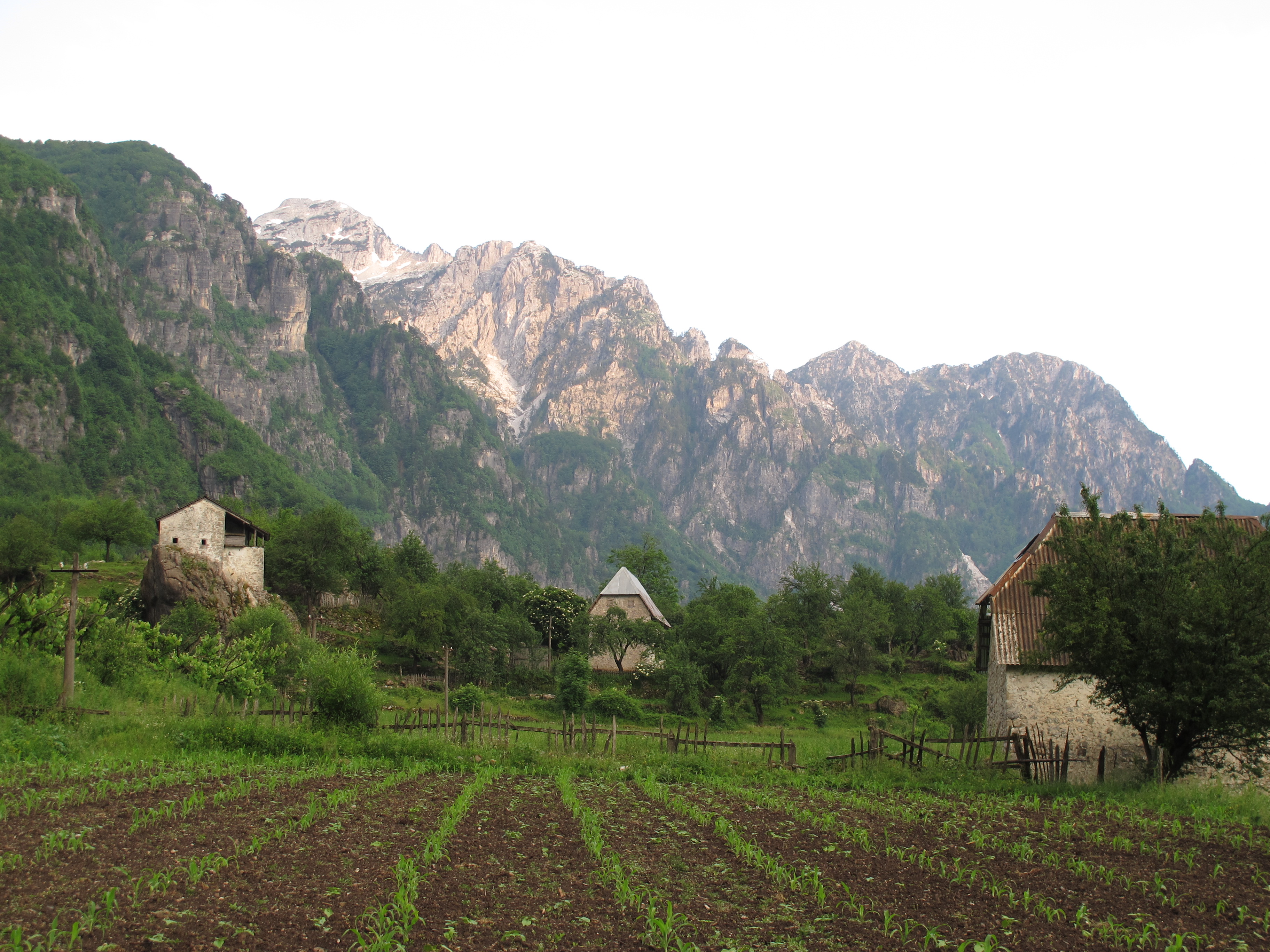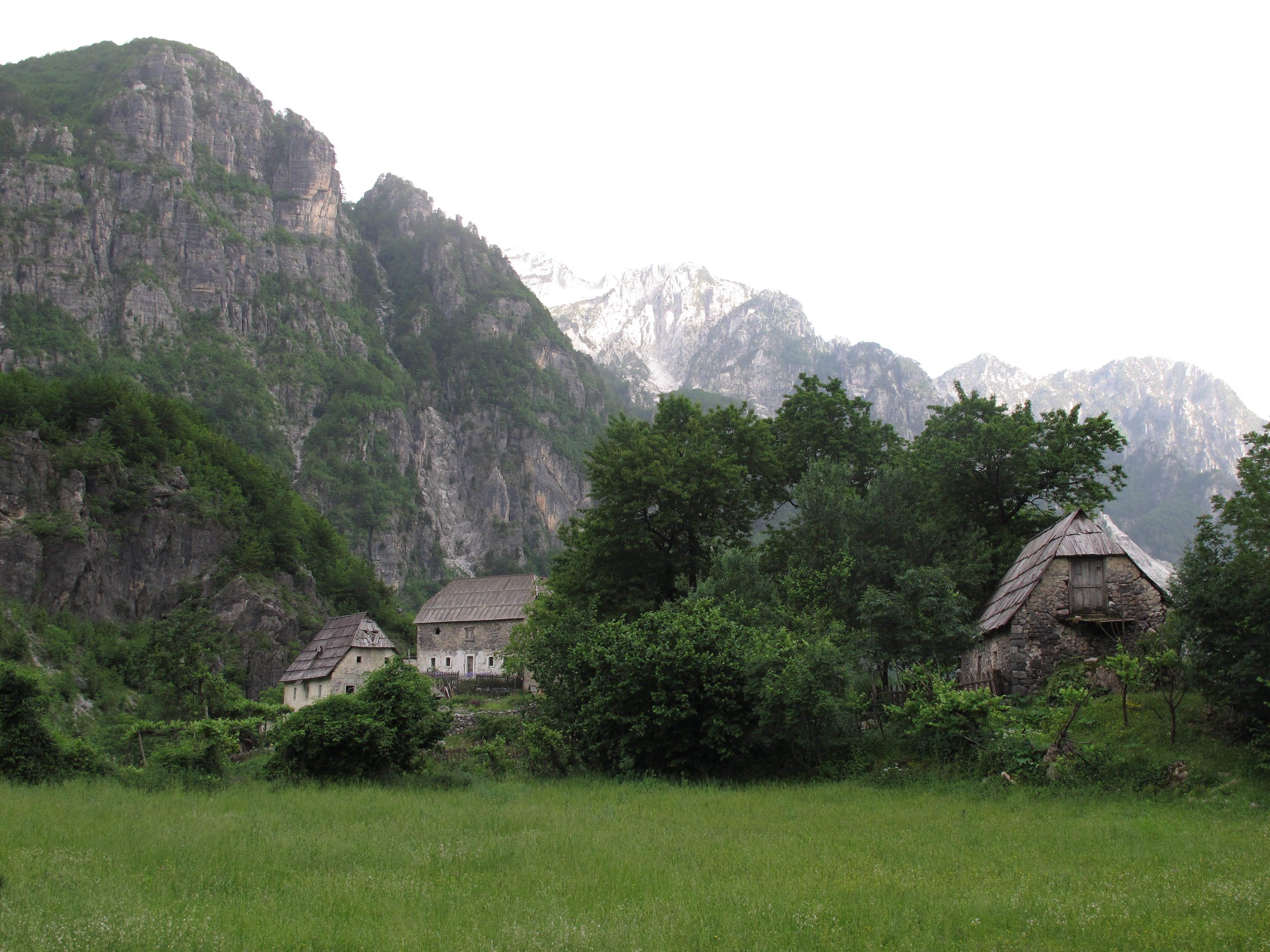 For seven months Theth is isolated, cut off by the winter snows. The rocky track to get there is arduous, with slippery hairpin bends, even when the snows have melted in May. As we climbed the narrow pass and entered the clouds, the weather closed in, and the temperature slumped. Tea was taken on top, wrapped in fleeces, snatching fleeting glimpses, through the cloud, of the fields far below. We are in a remote corner of northern Albania, with Kosovo to the north-east, six hours drive from Skhodra. The highest peak reaches 2,700 metres and snow is clinging to the summits.
