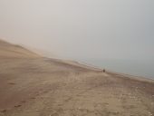 The following morning we awoke to the mist rolling down the dunes of the Namib and out to sea, and we were able to appreciate the full grandeur of the land and seascape. The next challenge was a stretch through some rocky outcrops and avoiding the sinkholes in and around the lagoons, formed by the sand spit of Baia Dos Tigres, a deserted settlement that had been cut off from the mainland in the 60’s and abandoned.