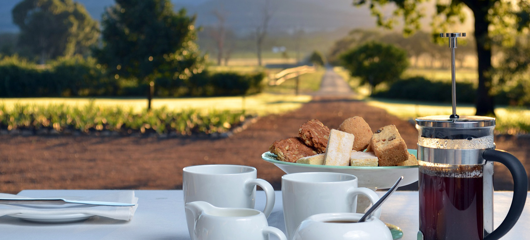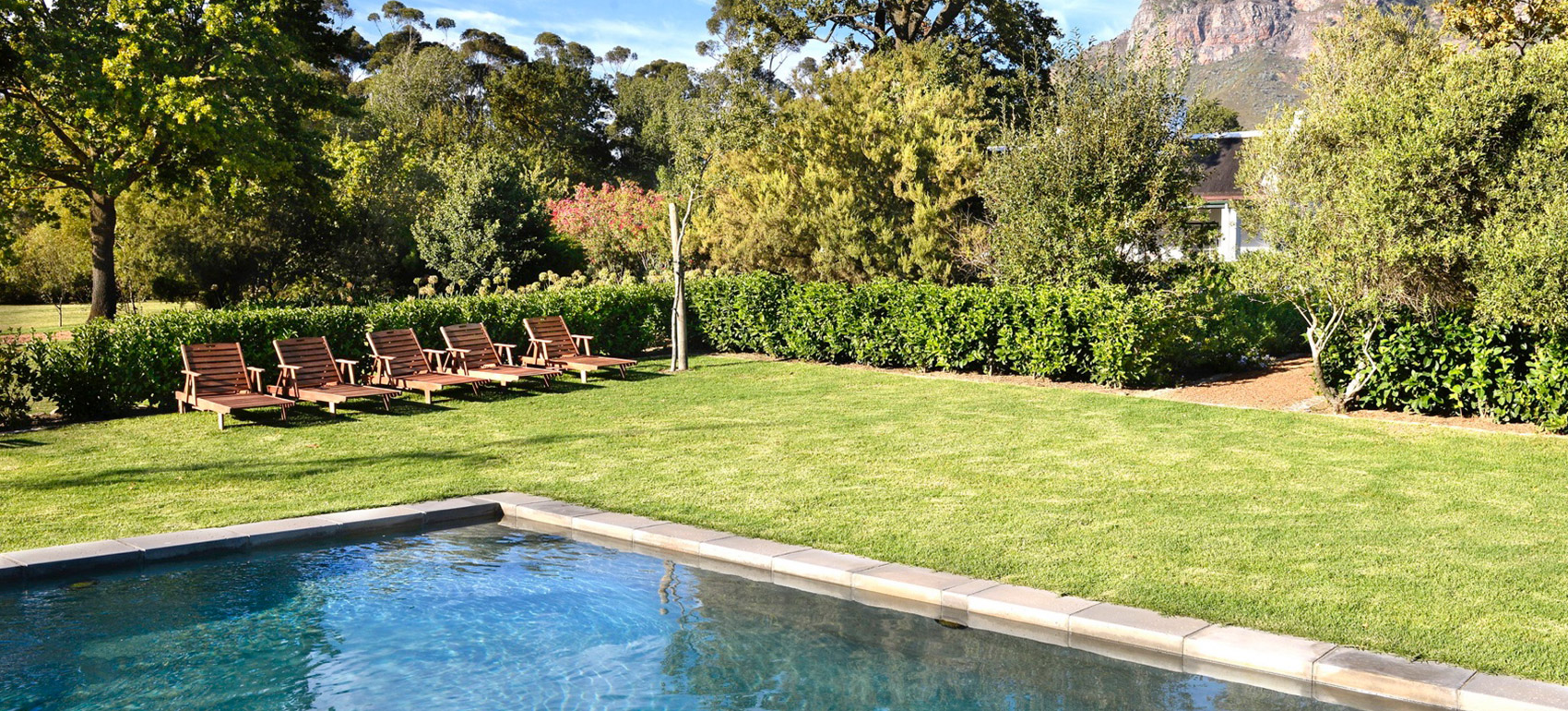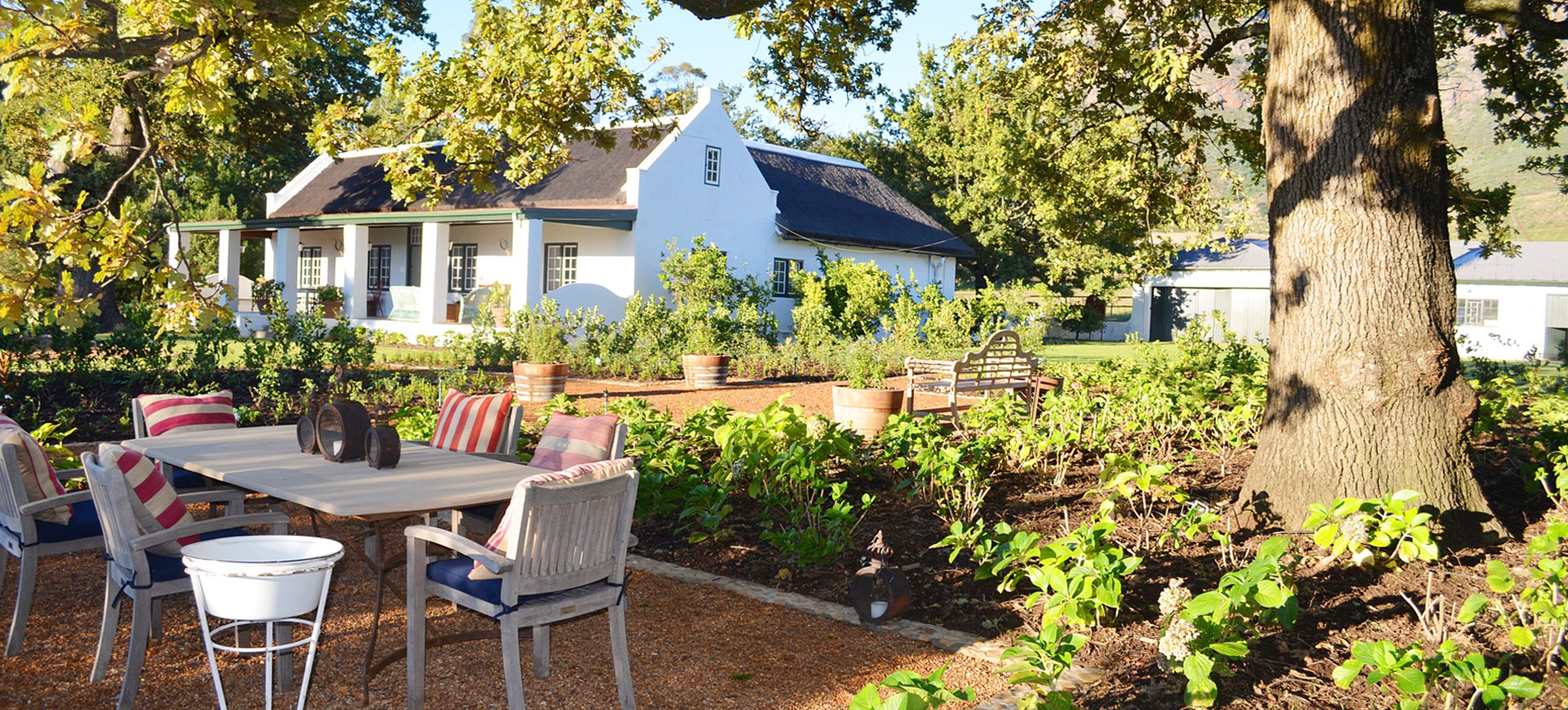 A delicious breakfast is included, prepared by Rhodes Cottage’s dedicated “anything is possible” butler, Francois. Your meals can be taken wherever you choose: breakfast with freshly squeezed fruit juice on the picturesque front veranda, lunch under the trees in the garden, share a cheese platter on a lounger next to the pool, barbecue (braai) under the trees or stars, take morning tea in a rosemary-scented back courtyard with views straight up into the Simonsberg mountains, or seat 10 for dinner at the period dining table in the main cottage’s formal dining room.