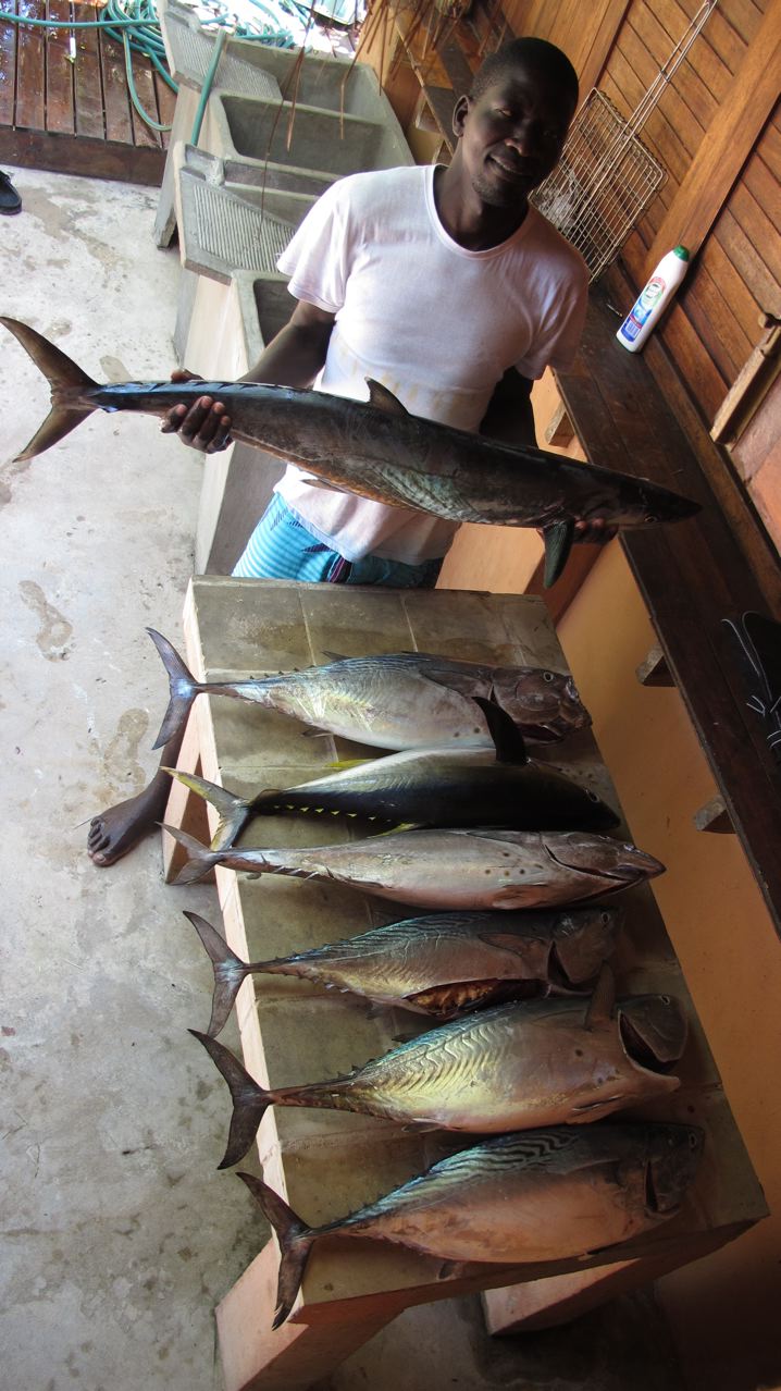 In between injections of gin and quinine we went to test the health of gill-bearing aquatic vertebrae off Linene Island, on the southern tip of the Bazaruto Archipelago in Mozambique. On the surface there were plenty of healthy signs; breaching whales, popping heads of loggerhead turtles and pods of spinning dolphins. Below the surface too there was plenty of action. We were ‘taxed’ catches by sharks and even ‘upgraded’, when the fish on the line was swallowed and became part of a larger catch. Most of the fish were tagged and released save some sashimi and seared tuna, succulent king mackerel and ‘chicken of the sea’ dorado. Seven species were recorded, although the estimated 250 kg of Black Marlin escaped after 10 minutes of blistering bursts, and the yellow spotted kingfish was de-bodied by a shark.