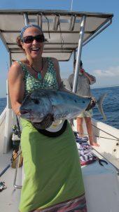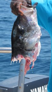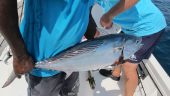 The smooth aggressive King Mackerel took surface lures and drop shots. Blue grey above and silvery sides made delicious meaty and flavoursome steaks.