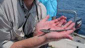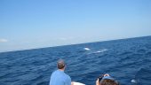 Striped Bonito took small silvery lures, immitating sprats, cast into the bait ball on light tackle. The flocks of terns would indicate the feeding fish below, picking off silvery sprats being chased by the bonito. Heavy and muscular fish.